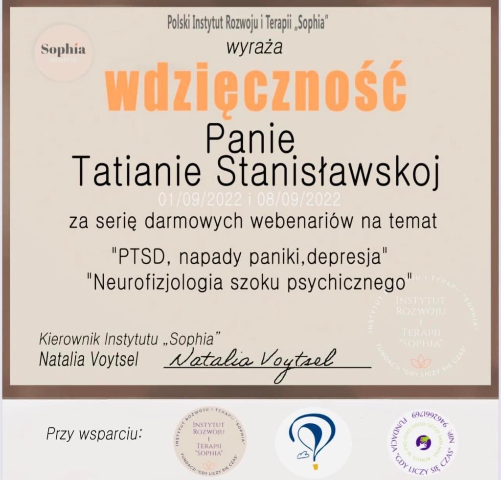 We provide training for psychologists: webinars on war, clinical, and transgenerational trauma.